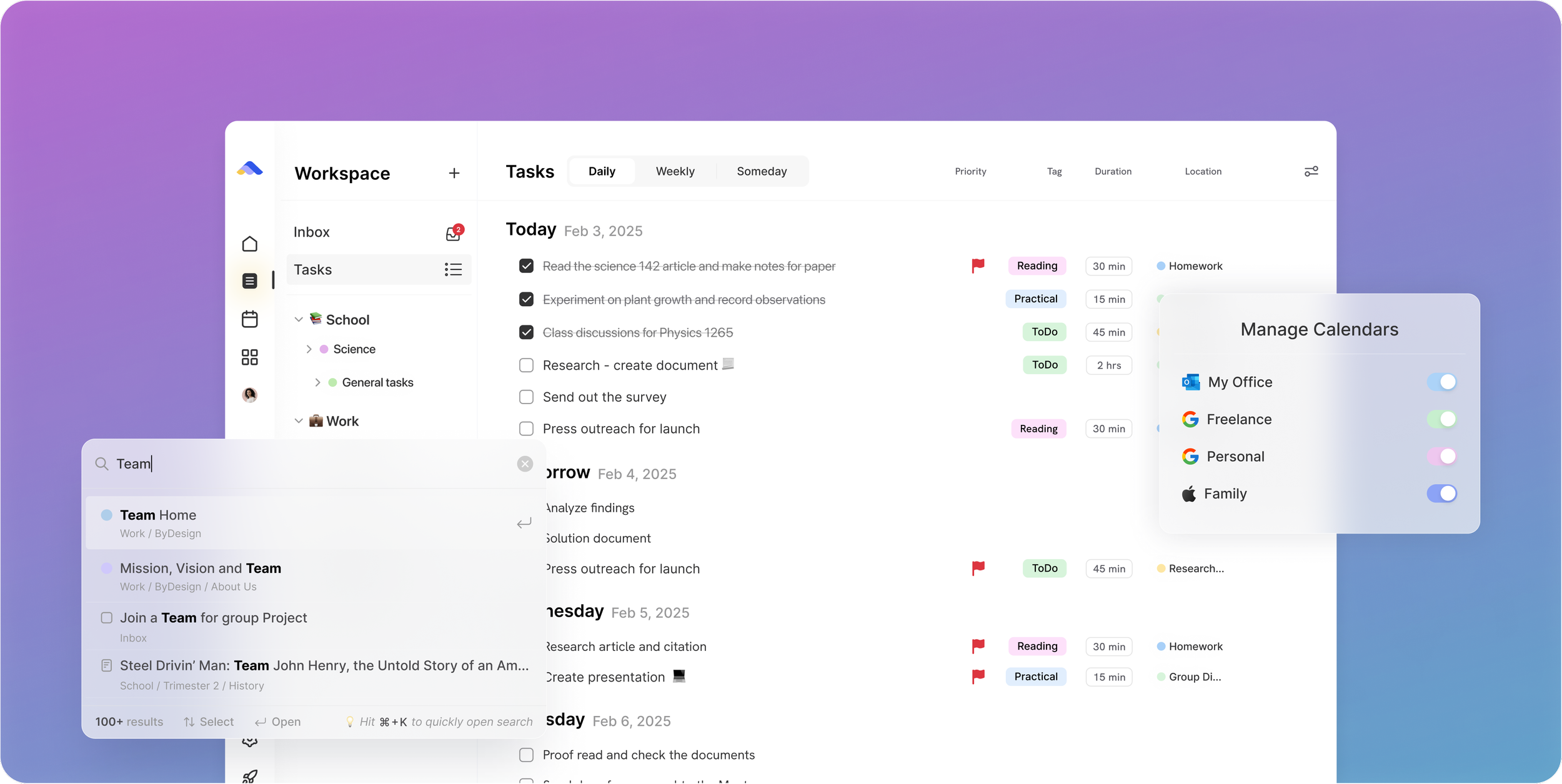 Plan projects. Track tasks. Work together.